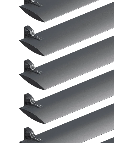 - L’uso di attacchi fissati direttamente alla pavimentazione consente di scegliere liberamente la distanza tra le lamelle durante l’installazione, senza doverla definire al momento dell’ordinazione.